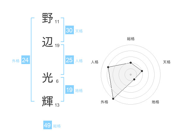 野辺 光輝さんの総格は49画の2点!