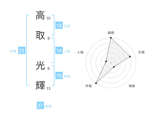 高取 光輝さんの総格は37画の5点!