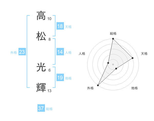 高松 光輝さんの総格は37画の5点!