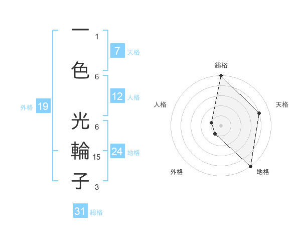 一色 光輪子さんを姓名の画数から五運を鑑定