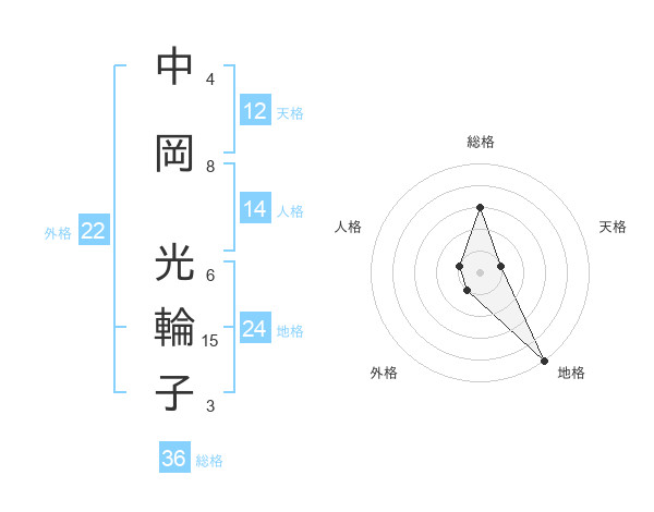 中岡 光輪子さんを姓名の画数から五運を鑑定