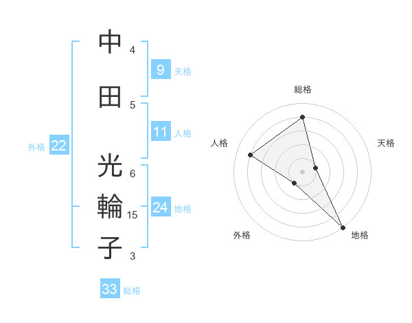 中田 光輪子さんの総格は33画の4点