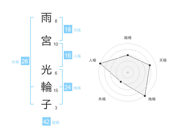 雨宮 光輪子さんを姓名の画数から五運を鑑定