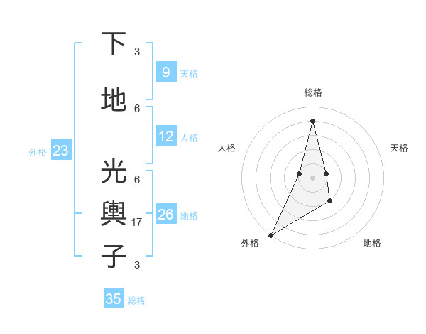 下地 光輿子さんを姓名の画数から五運を鑑定