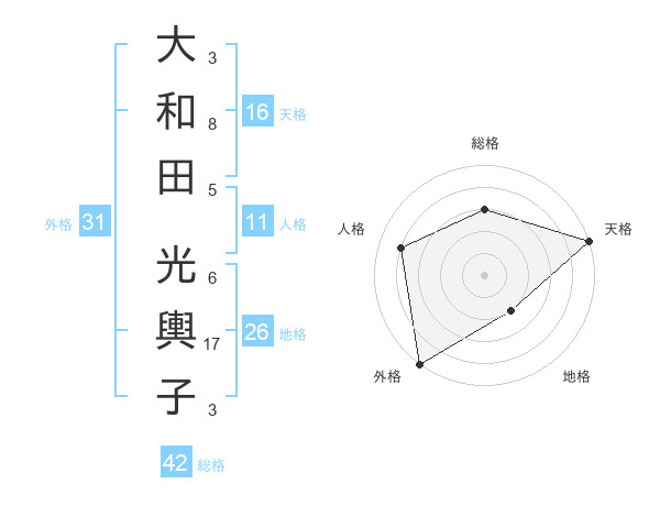大和田 光輿子さんを姓名の画数から五運を鑑定