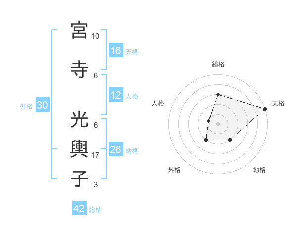 宮寺 光輿子さんの総格は42画の3点!