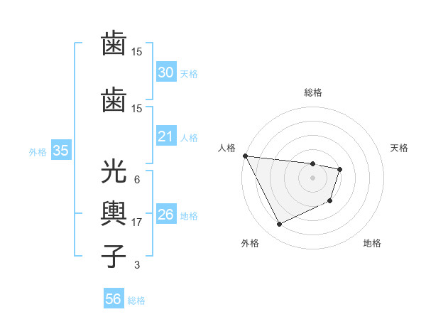 歯歯 光輿子さんの外格は35画の4点!