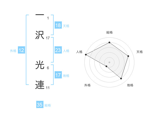 一沢 光連さんの総格は35画の4点!