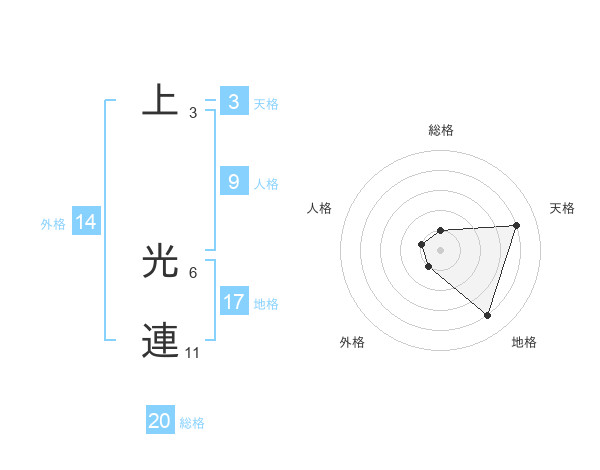 上 光連さんの総格は20画の1点!