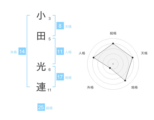 小田 光連さんの総格は25画の4点!