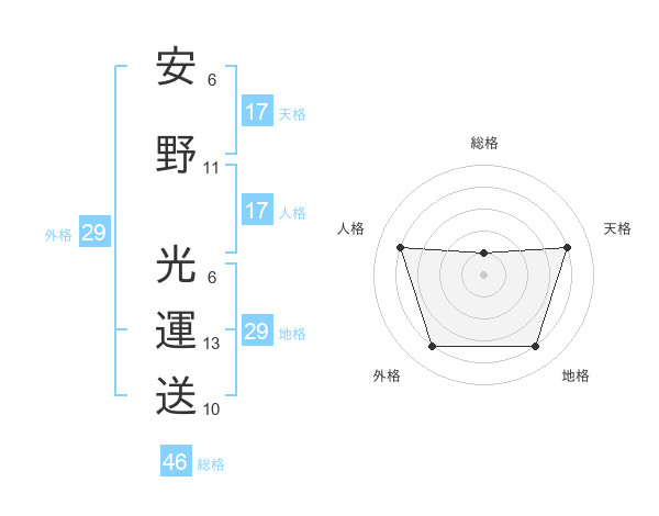 安野 光運送さんの総格は46画の1点!