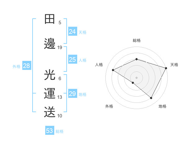 田邊 光運送さんの天格は24画の5点!