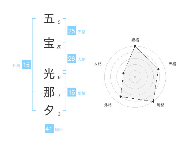 五宝 光那夕さんの総格は41画の5点!