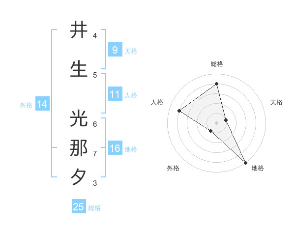 井生 光那夕さんを姓名の画数から五運を鑑定