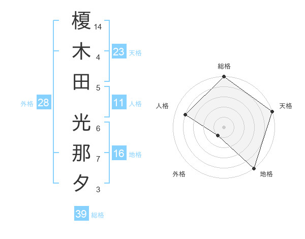 榎木田 光那夕さんの天格は23画の5点!