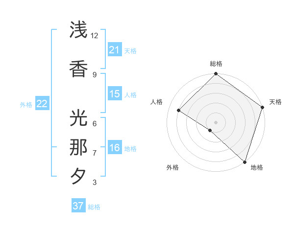 浅香 光那夕さんを姓名の画数から五運を鑑定