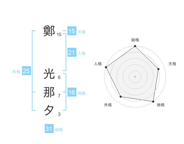 鄭 光那夕さんの総格は31画の5点!