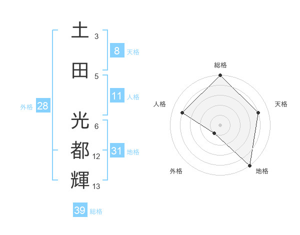 土田 光都輝さんを姓名の画数から五運を鑑定