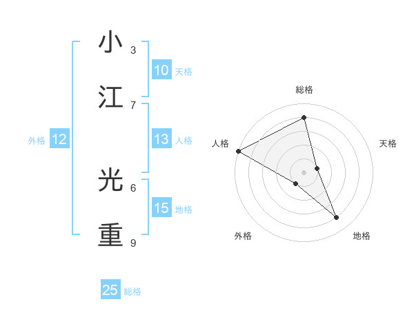 小江 光重さんの総格は25画の4点!