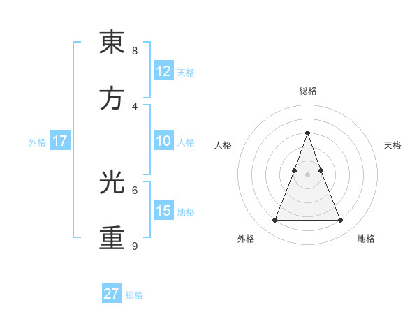 東方 光重さんの総格は27画の3点!