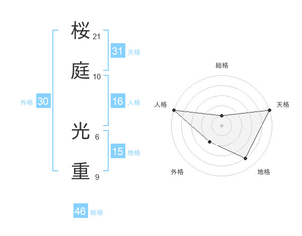 桜庭 光重さんを姓名の画数から五運を鑑定