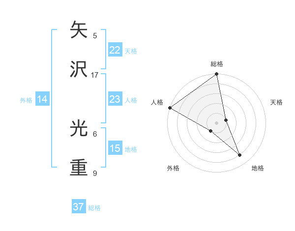 矢沢 光重さんを姓名の画数から五運を鑑定