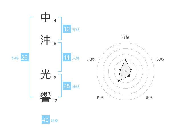 中沖 光響さんを姓名の画数から五運を鑑定