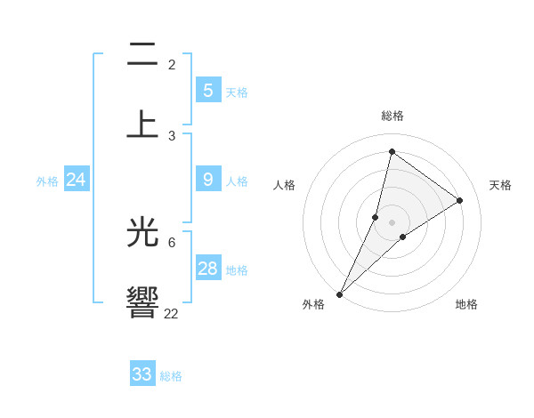 二上 光響さんの外格は24画の5点!
