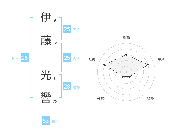 伊藤 光響さんの総格は53画の3点!