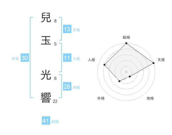 兒玉 光響さんを姓名の画数から五運を鑑定