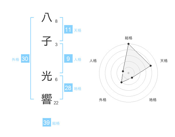 八子 光響さんの総格は39画の5点!