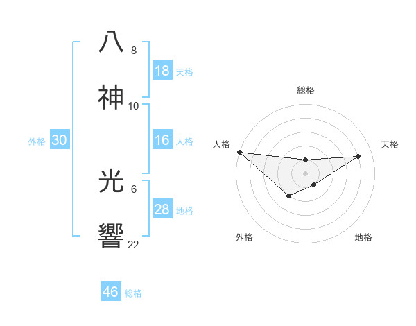 八神 光響さんの天格は18画の4点!