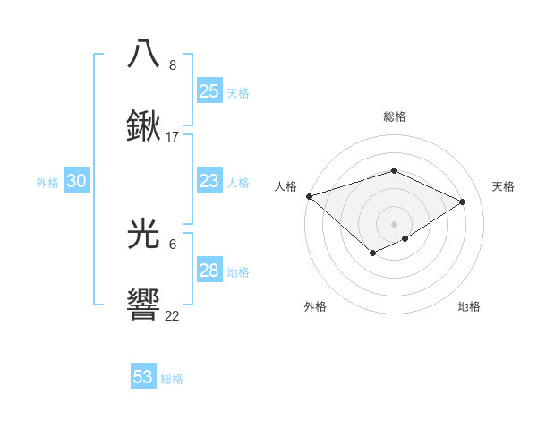 八鍬 光響さんの人格は23画の5点!