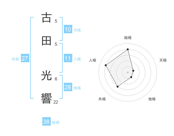 古田 光響さんの総格は38画の4点!