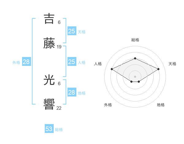 吉藤 光響さんを姓名の画数から五運を鑑定