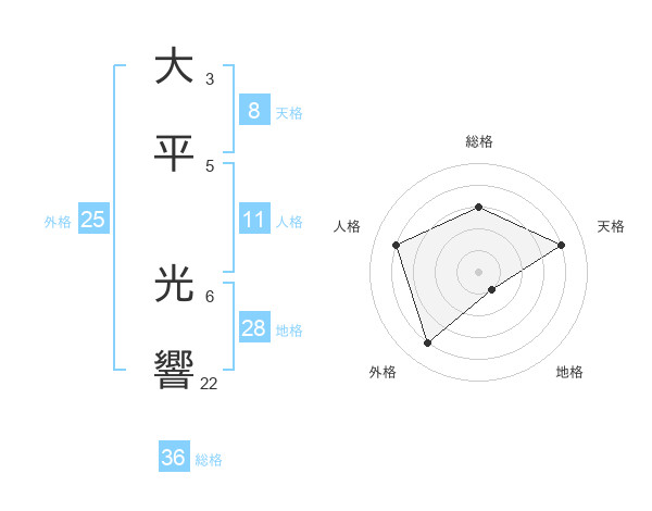 大平 光響さんの天格は8画の4点!