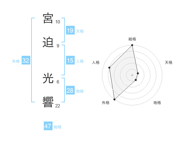 宮迫 光響さんの総格は47画の5点!