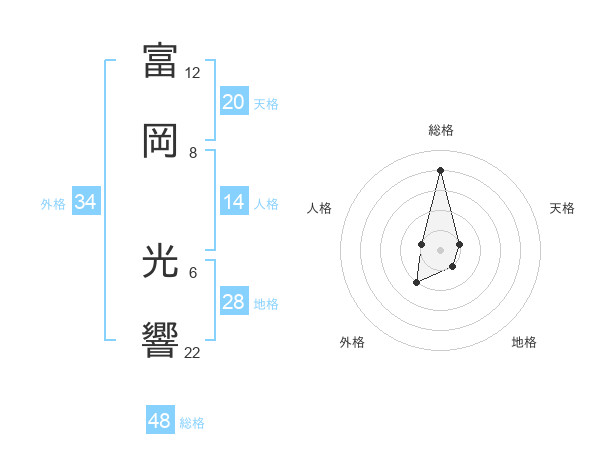富岡 光響さんの総格は48画の4点!