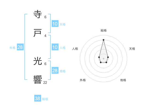 寺戸 光響さんの総格は38画の4点!