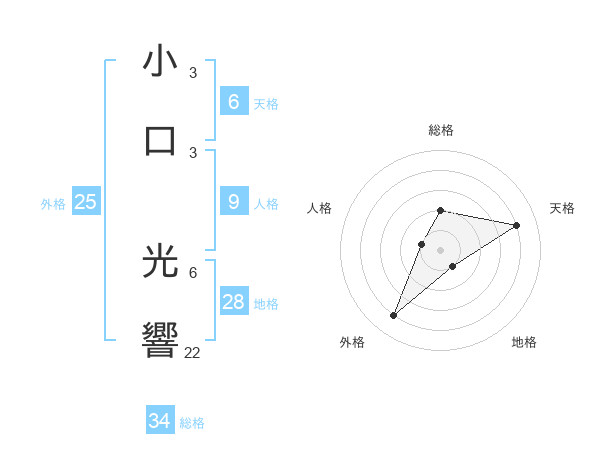 小口 光響さんを姓名の画数から五運を鑑定