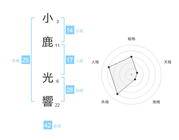 小鹿 光響さんを姓名の画数から五運を鑑定