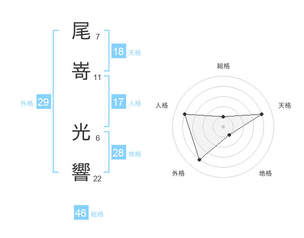 尾嵜 光響さんの外格は29画の4点!