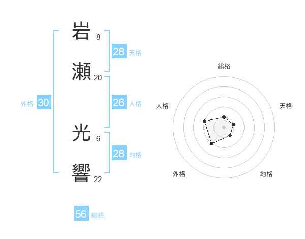 岩瀬 光響さんを姓名の画数から五運を鑑定
