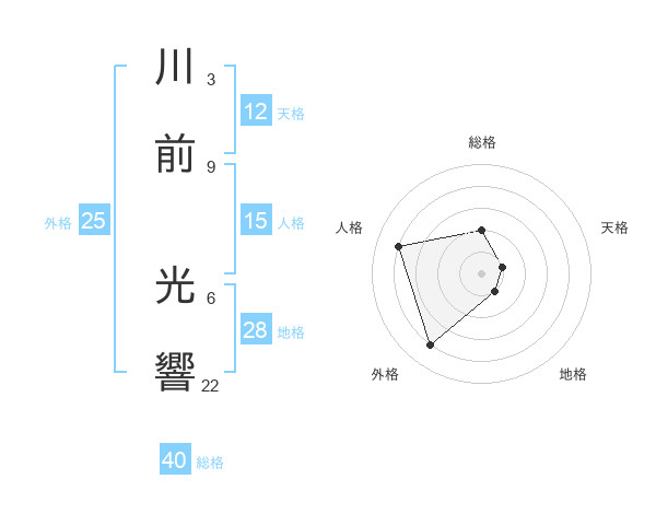 川前 光響さんの外格は25画の4点!
