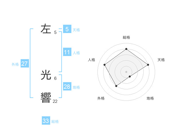 左 光響さんの総格は33画の4点!