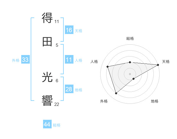 得田 光響さんの外格は33画の4点!