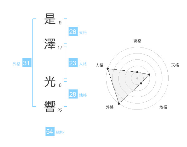 是澤 光響さんの総格は54画の1点!