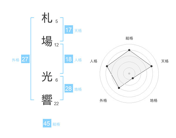 札場 光響さんの総格は45画の4点!