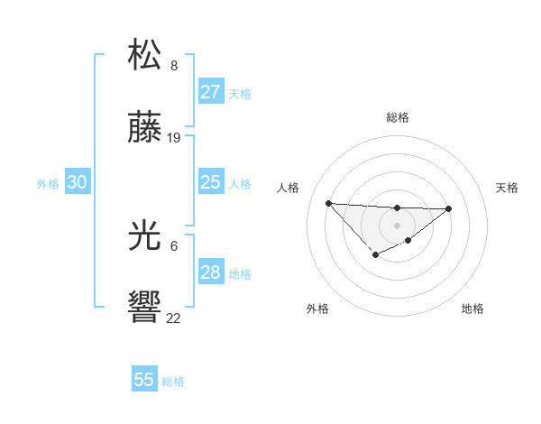 松藤 光響さんの総格は55画の1点!