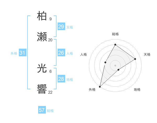 柏瀬 光響さんの総格は57画の4点!